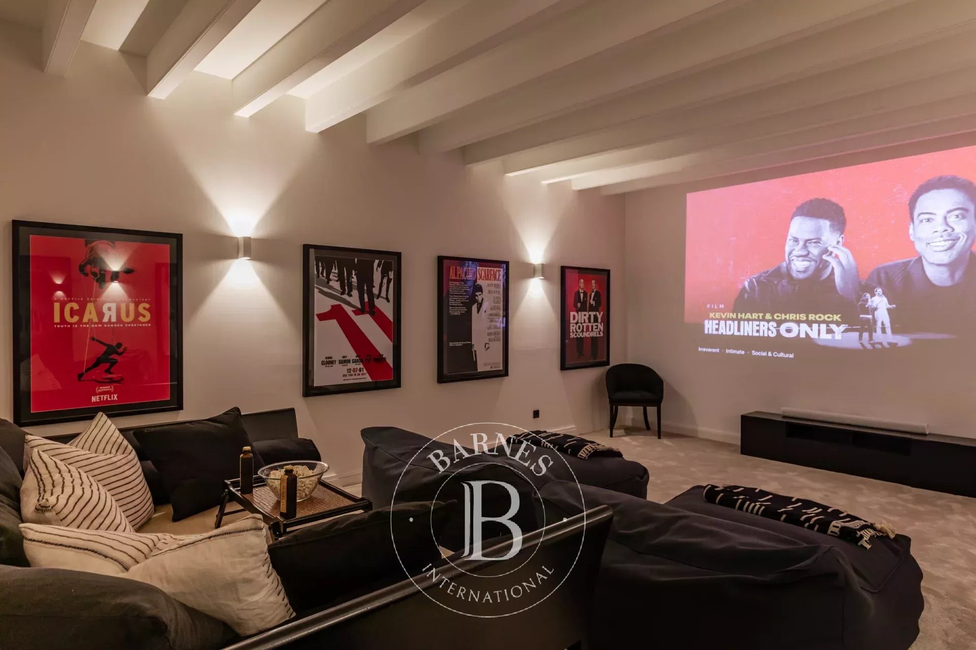 Das Haus verfügt über fünf großzügige Schlafzimmer und fünf Badezimmer sowie einen vielseitigen Wohn-, Ess- und Küchenbereich, der für einen reibungslosen Ablauf gestaltet ist. Bodentiefe Fenster füllen jeden Raum mit natürlichem Licht und rahmen die atemberaubende Umgebung ein. Eine voll ausgestattete Designer-Küche mit hochwertigen Geräten bietet reichlich Platz für kulinarische Aktivitäten, und die offene Raumaufteilung verbessert die Verbindung zwischen Innen- und Außenbereich.