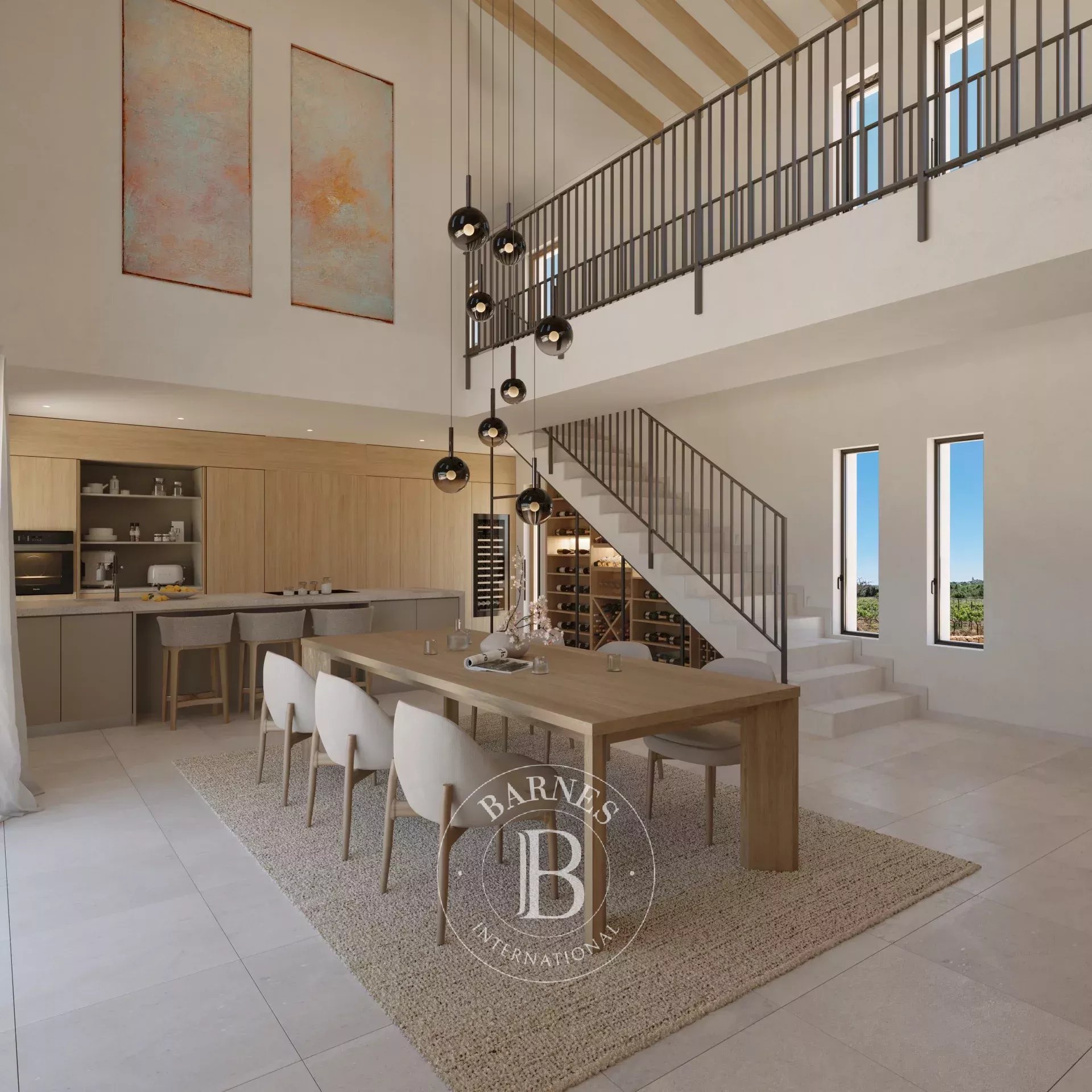 Finca Sa Vinya ist ein neu erbautes Landhaus, dessen Fertigstellung für Ende 2025 geplant ist. Es befindet sich zwischen Weinbergen nahe Sencelles im Zentrum Mallorcas. Das Anwesen liegt auf einem 14 206 m2 großen Grundstück mit weiten Landschaftsblicken bis hin zu den Tramuntana Bergen. Entworfen von OIB Architecture kombiniert es klare moderne Linien mit traditionellen mallorquinischen Materialien wie Santanyi Stein, Natursteinmauern, sichtbaren Holzbalken und Tonziegeln Teja Arabe.