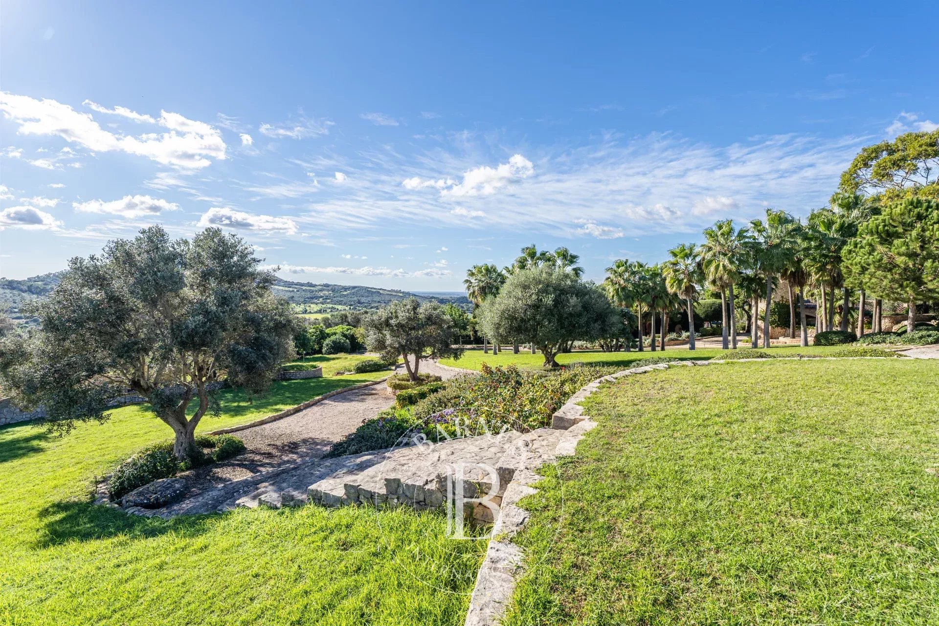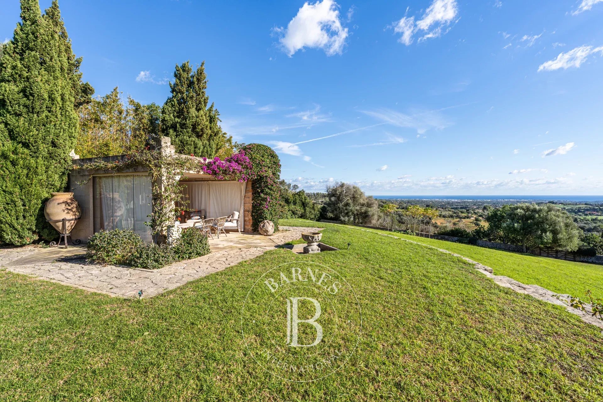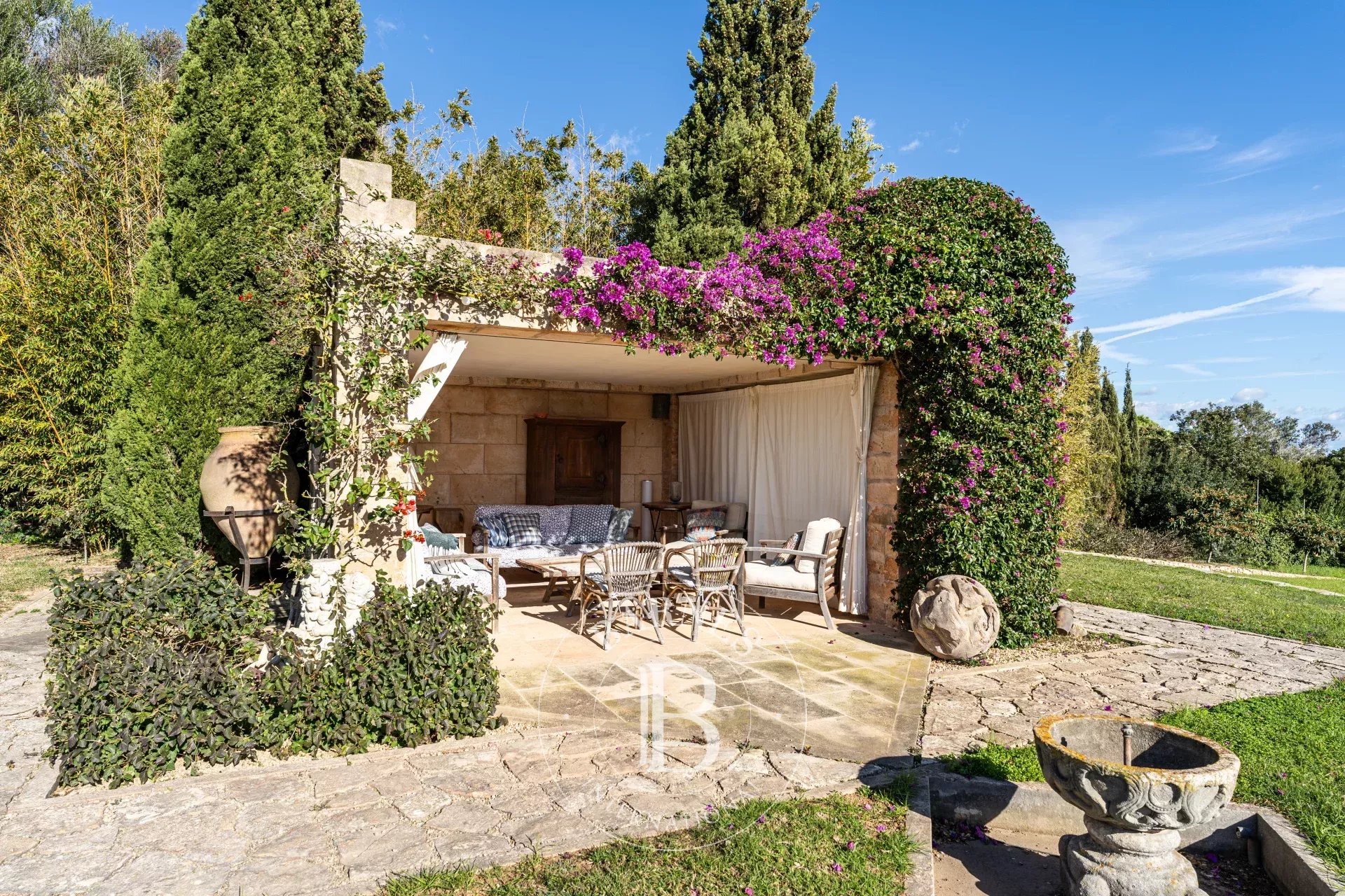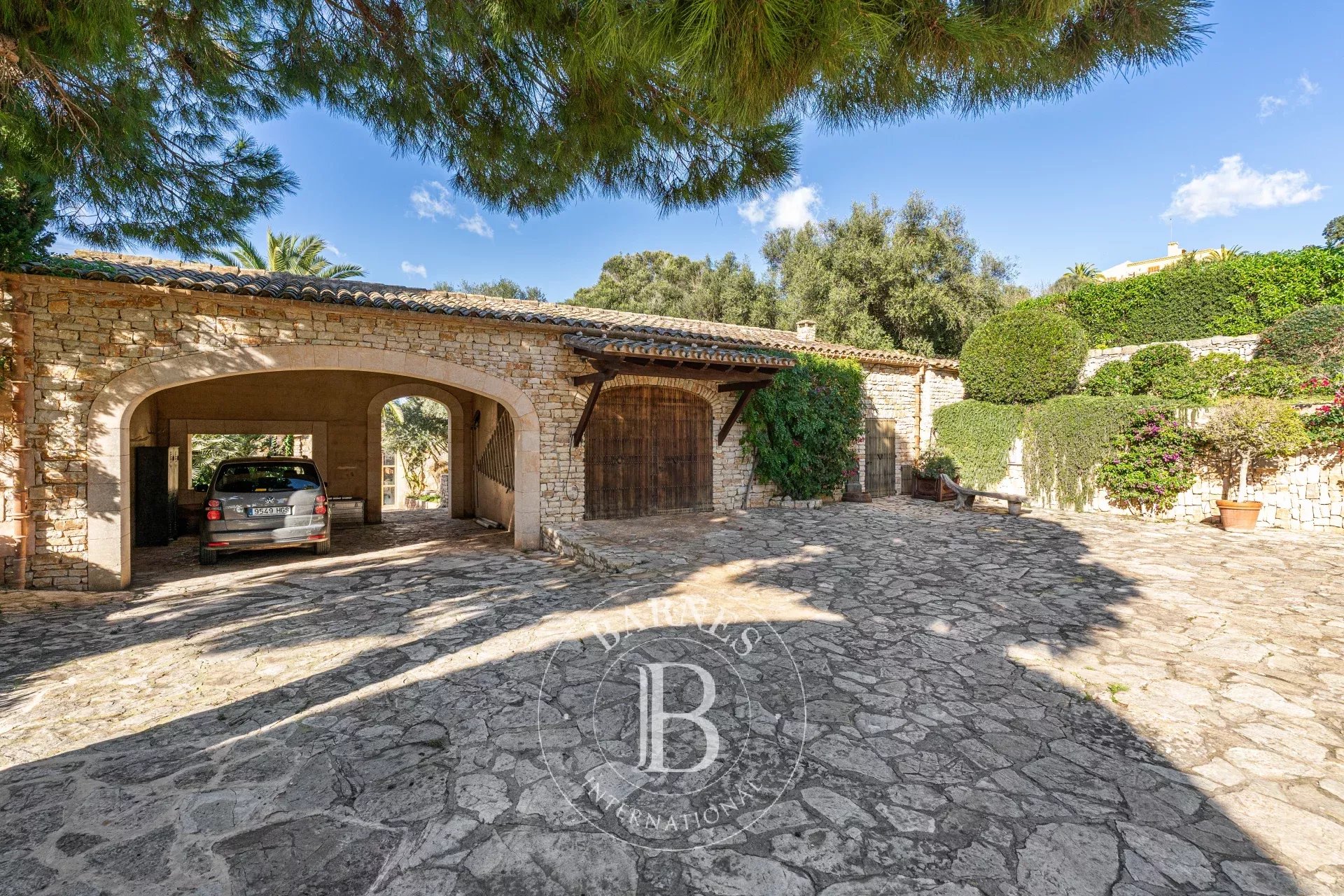 Ubicada en el tranquilo paisaje rural de Cas Concos, esta extensa propiedad abarca unos impresionantes 24 824 metros cuadrados y ofrece un versátil refugio residencial con aproximadamente 1 760 metros cuadrados construidos distribuidos en varios edificios independientes. La residencia principal, terminada en 1992, cuenta con unos 837 metros cuadrados distribuidos en dos plantas, creando un interior generoso con cinco dormitorios, cuatro baños, dos aseos para invitados, un salón formal con chimenea, un comedor independiente, un jardín de invierno, una cocina completamente equipada y estancias prácticas que incluyen lavandería y cámara frigorífica para almacenamiento culinario. Suelo de roble y calefacción por suelo radiante garantizan confort durante todo el año, mientras que amplias aberturas conducen directamente a una gran terraza que continúa hacia la piscina de doce por seis metros con sistema de contracorriente.