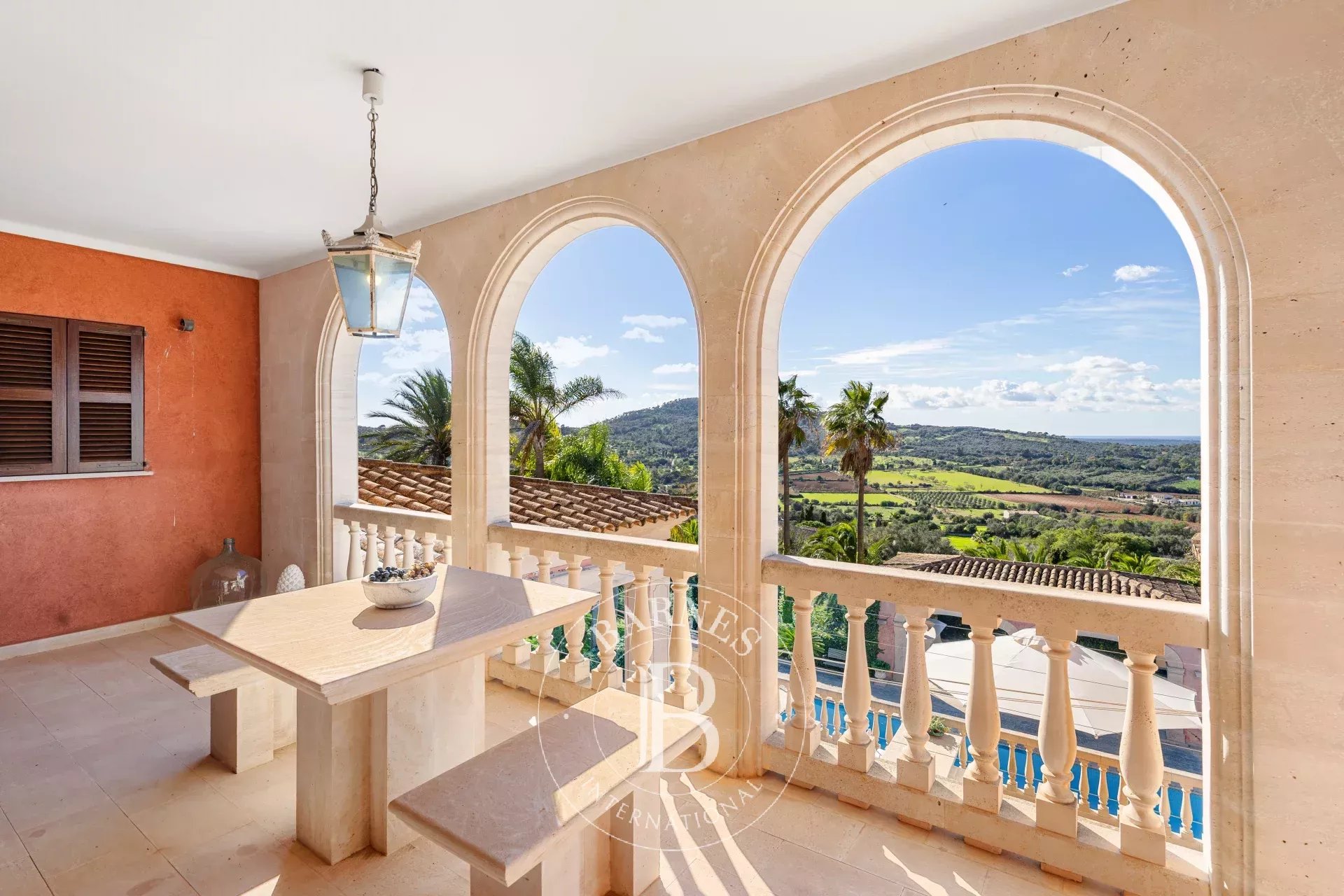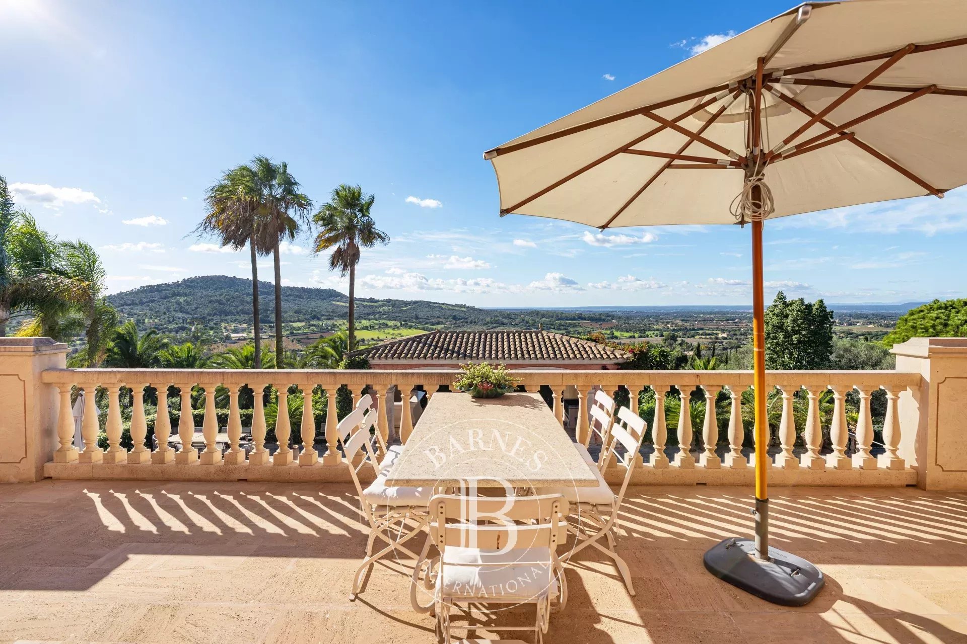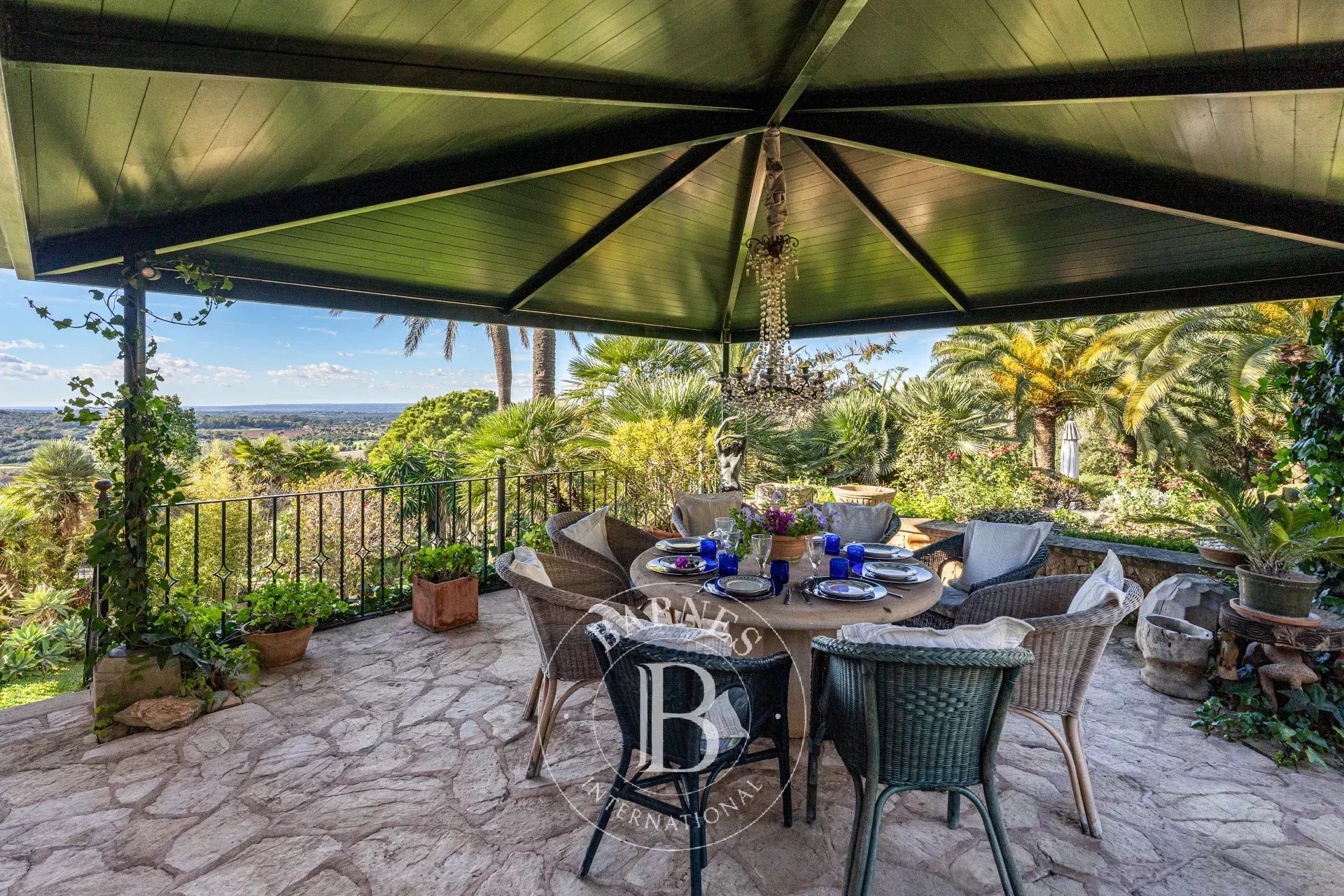 Ubicada en el tranquilo paisaje rural de Cas Concos, esta extensa propiedad abarca unos impresionantes 24 824 metros cuadrados y ofrece un versátil refugio residencial con aproximadamente 1 760 metros cuadrados construidos distribuidos en varios edificios independientes. La residencia principal, terminada en 1992, cuenta con unos 837 metros cuadrados distribuidos en dos plantas, creando un interior generoso con cinco dormitorios, cuatro baños, dos aseos para invitados, un salón formal con chimenea, un comedor independiente, un jardín de invierno, una cocina completamente equipada y estancias prácticas que incluyen lavandería y cámara frigorífica para almacenamiento culinario. Suelo de roble y calefacción por suelo radiante garantizan confort durante todo el año, mientras que amplias aberturas conducen directamente a una gran terraza que continúa hacia la piscina de doce por seis metros con sistema de contracorriente.