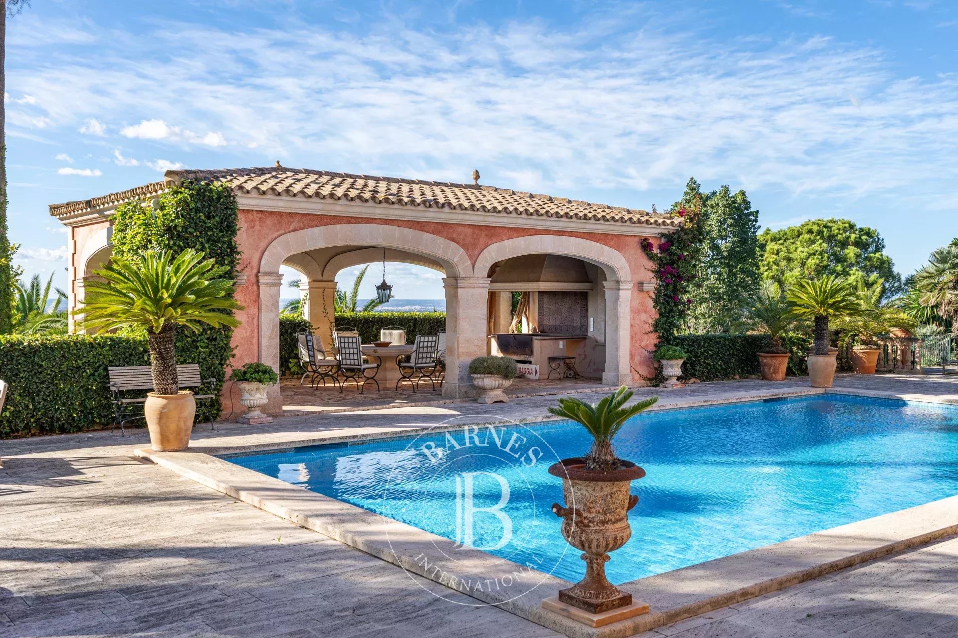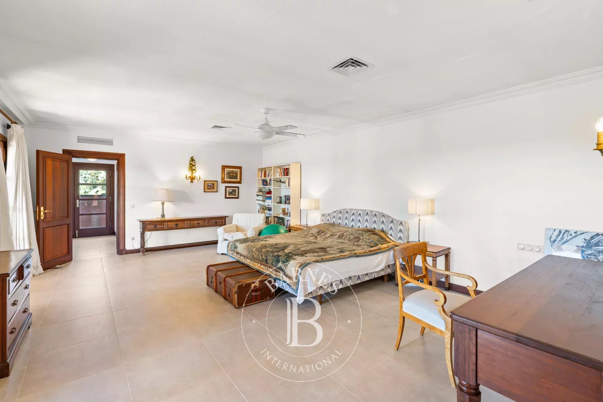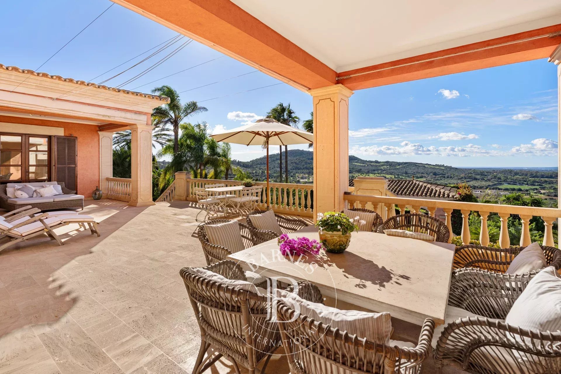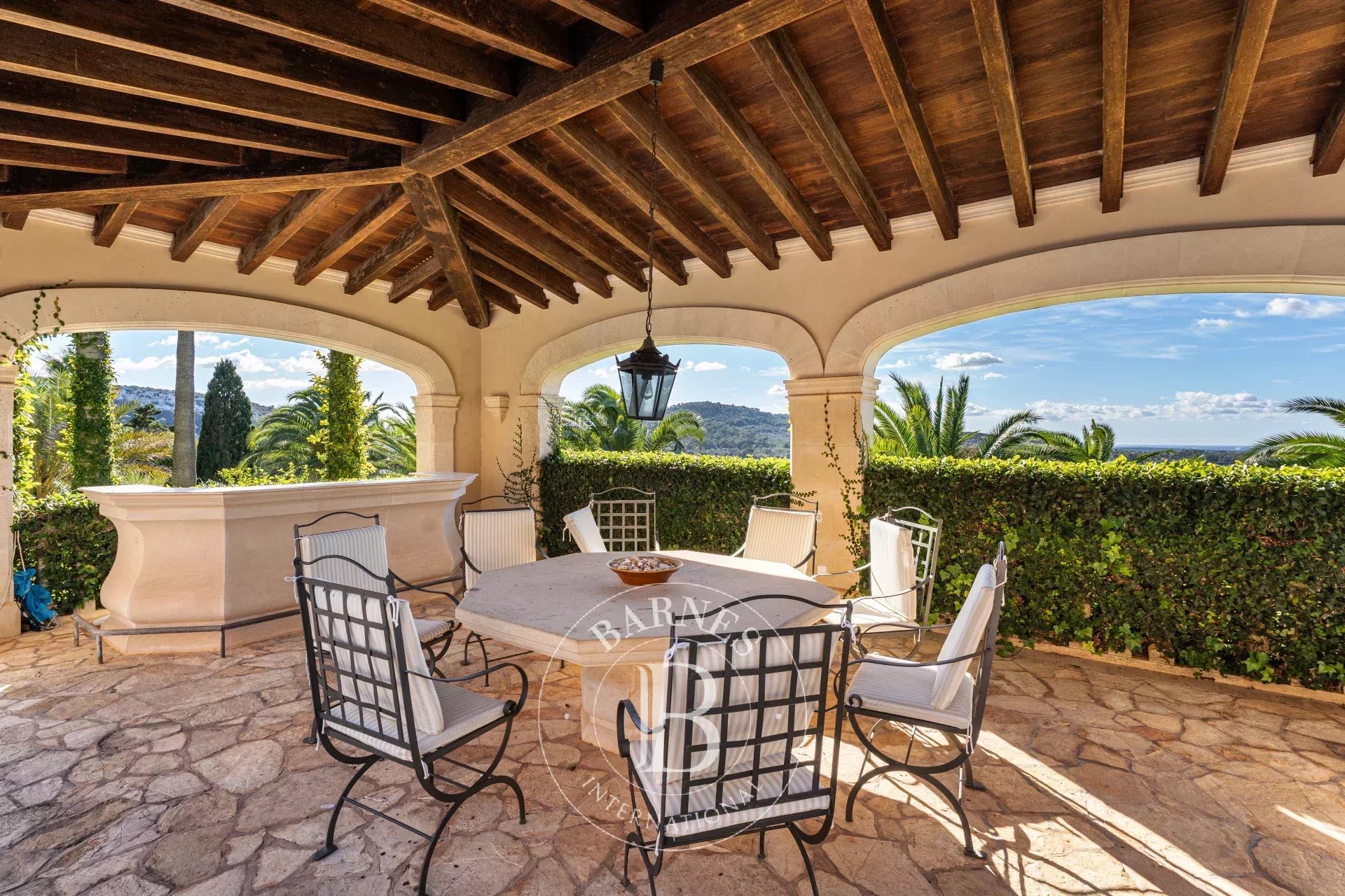 Ubicada en el tranquilo paisaje rural de Cas Concos, esta extensa propiedad abarca unos impresionantes 24 824 metros cuadrados y ofrece un versátil refugio residencial con aproximadamente 1 760 metros cuadrados construidos distribuidos en varios edificios independientes. La residencia principal, terminada en 1992, cuenta con unos 837 metros cuadrados distribuidos en dos plantas, creando un interior generoso con cinco dormitorios, cuatro baños, dos aseos para invitados, un salón formal con chimenea, un comedor independiente, un jardín de invierno, una cocina completamente equipada y estancias prácticas que incluyen lavandería y cámara frigorífica para almacenamiento culinario. Suelo de roble y calefacción por suelo radiante garantizan confort durante todo el año, mientras que amplias aberturas conducen directamente a una gran terraza que continúa hacia la piscina de doce por seis metros con sistema de contracorriente.