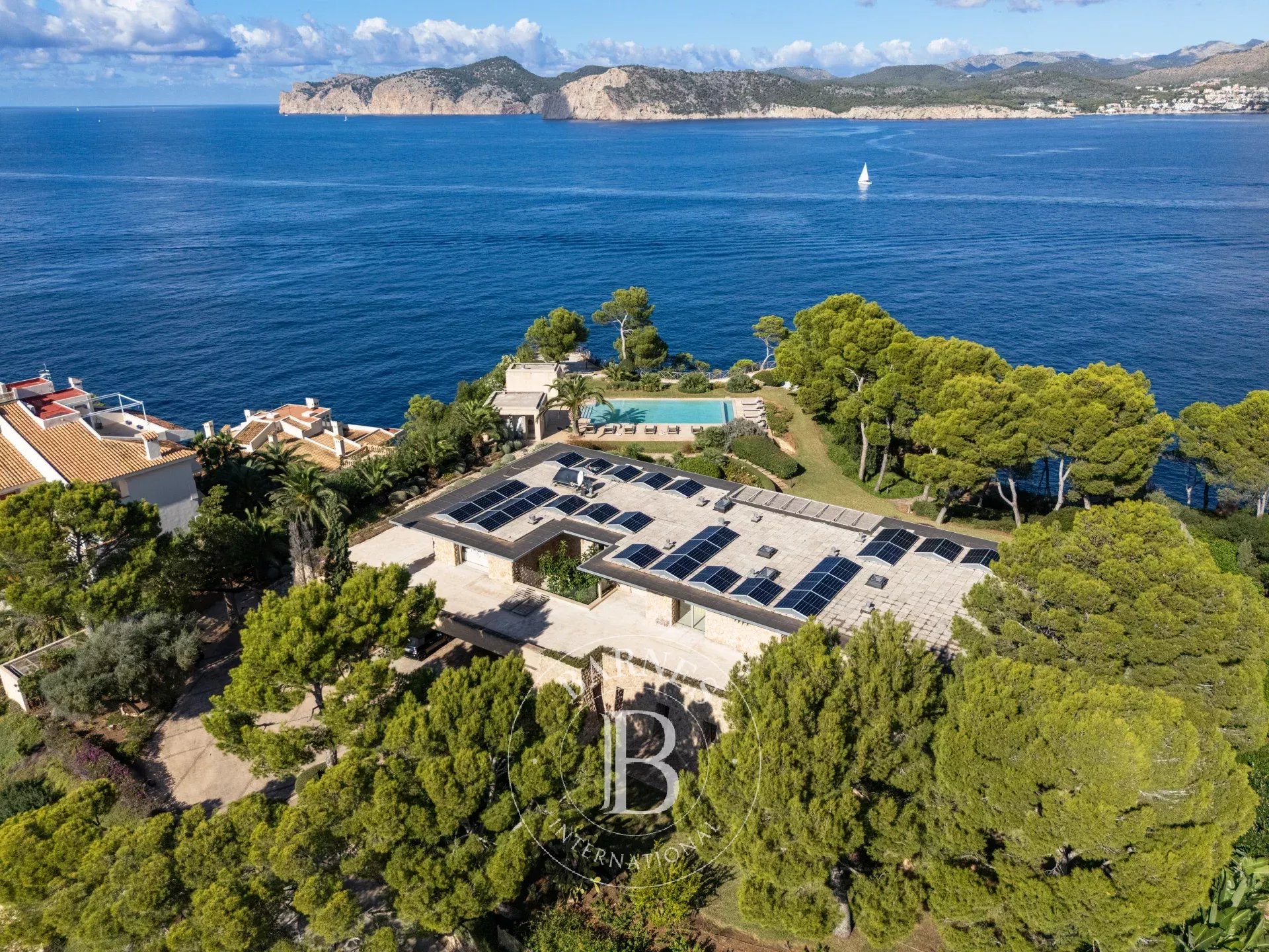 Villa Salimar, une creation remarquable du celebre architecte majorquin Pere Garau en 1964, se situe le long de la cote de Santa Ponsa offrant des vues directes sur la Mer Mediterranee. Pensee et modernisee en 2020 par More Design et Sebastian Pons, la villa combine harmonieusement le charme architectural original avec la vie contemporaine. La propriete reflète le gout meticulous de son proprietaire actuel, un ancien designer, avec un savoir faire unique et des details artistiques de createurs locaux dans toute la residence.