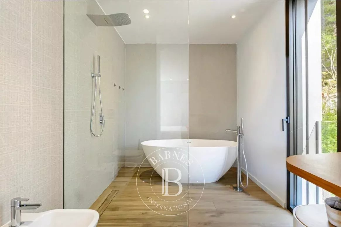 Cinq chambres avec salle de bain privative disposent chacune d’une terrasse privée offrant une vue panoramique, offrant un refuge personnel à chaque résident. Le sous-sol comprend un garage pour trois véhicules, un espace buanderie avec conduit de linge et une salle polyvalente adaptée pour une salle de sport, spa, sauna ou suite pour invités.