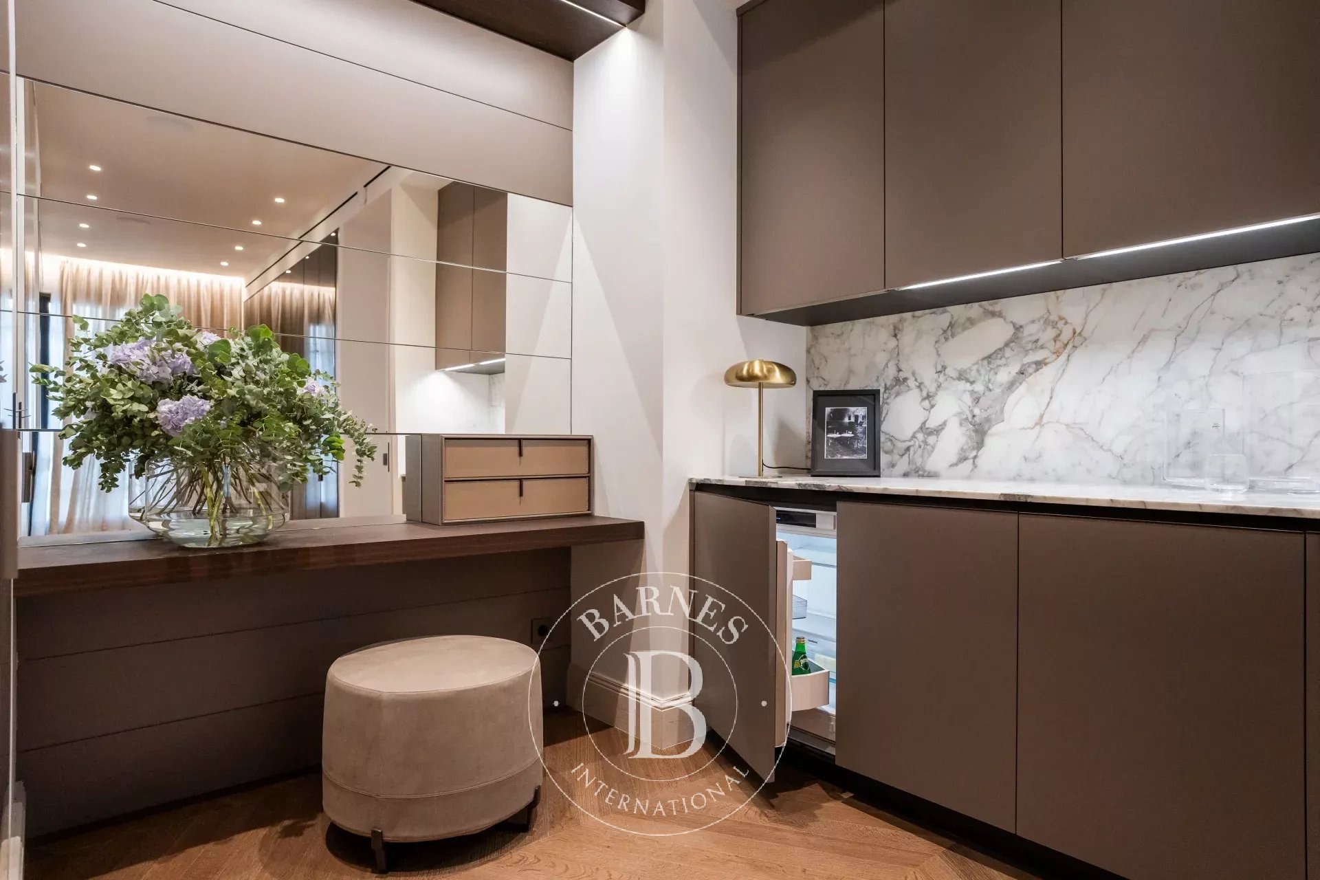 Répartie sur plusieurs demi-niveaux, la résidence comprend cinq chambres et sept salles de bains, dont une suite parentale occupant un étage entier pour plus d’intimité. L’agencement a été conçu pour offrir confort au quotidien et convivialité raffinée, avec trois cuisines entièrement équipées, une grande salle à manger et un salon, une bibliothèque, un bureau et un studio indépendant pour le personnel. Un garage privé et une grande terrasse viennent compléter ce bien d’exception.