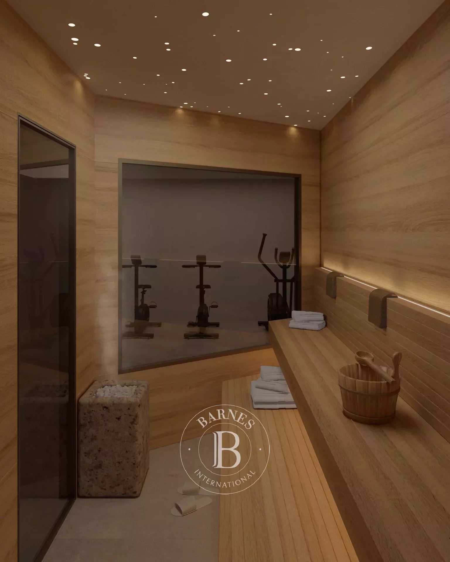The house is sold unfurnished, with pre-installations for the gym, sauna, and wine cellar included in the price, allowing the new owners to customize these spaces exactly to their preferences.