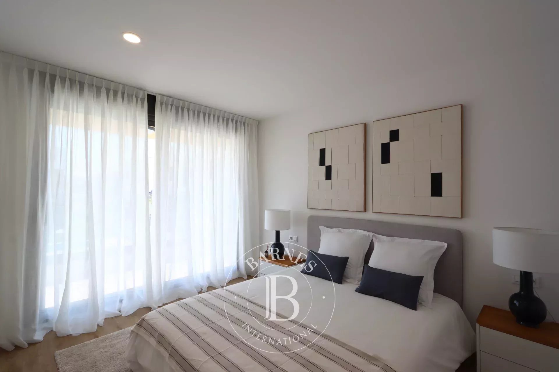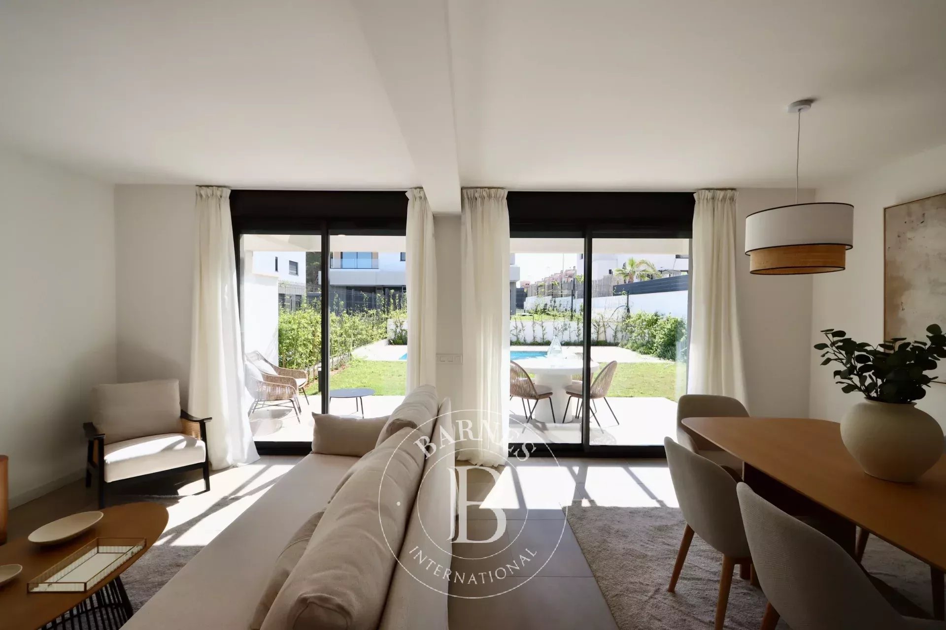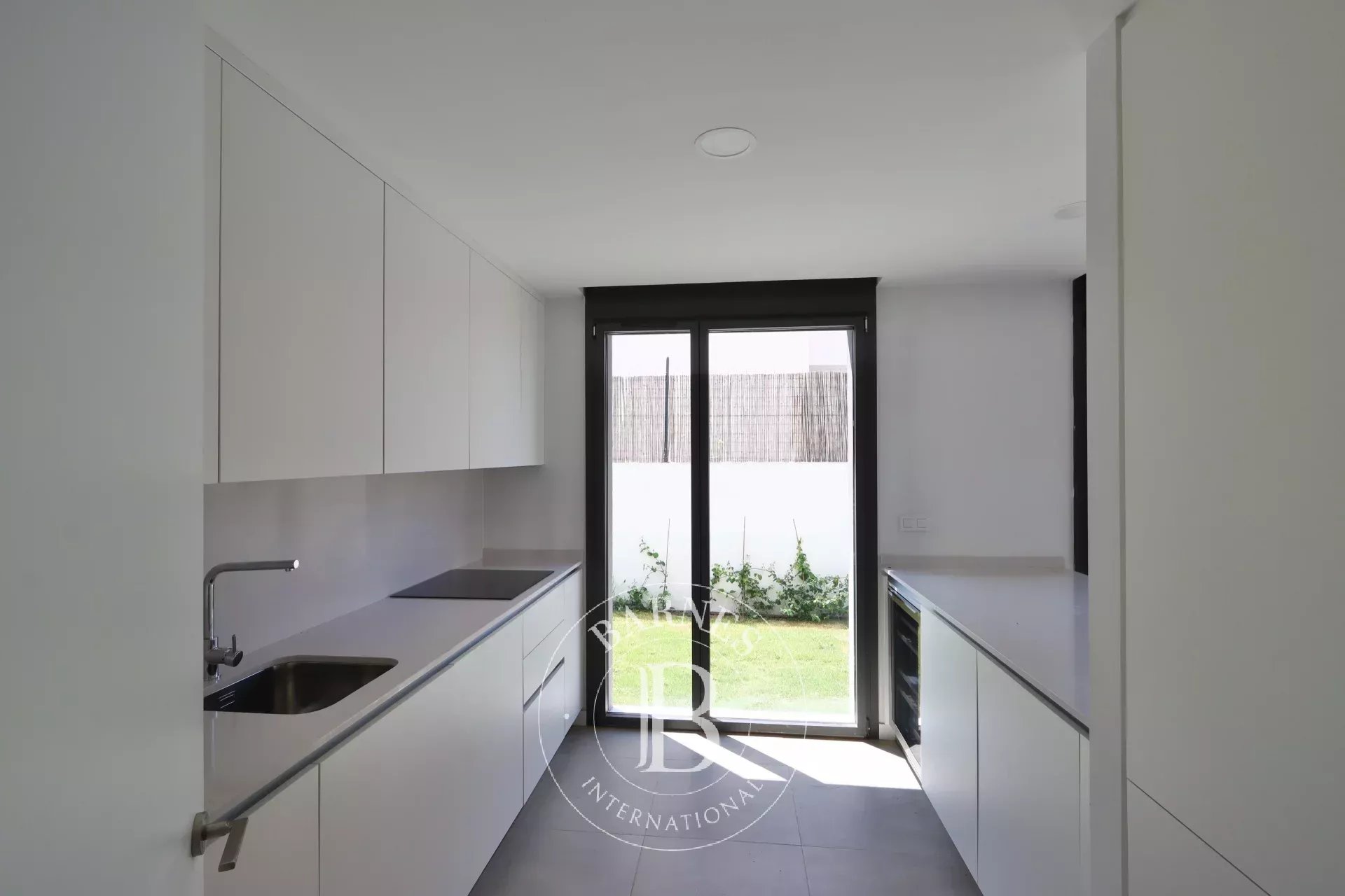 East-facing and designed to capture unobstructed views of the village and surrounding gardens, the property extends outdoors to a 267.7-square-meter garden, complete with a private swimming pool. A rooftop solarium provides an ideal vantage point to enjoy sunsets over Puig de Ros. Parking is available with two dedicated spaces on the property.