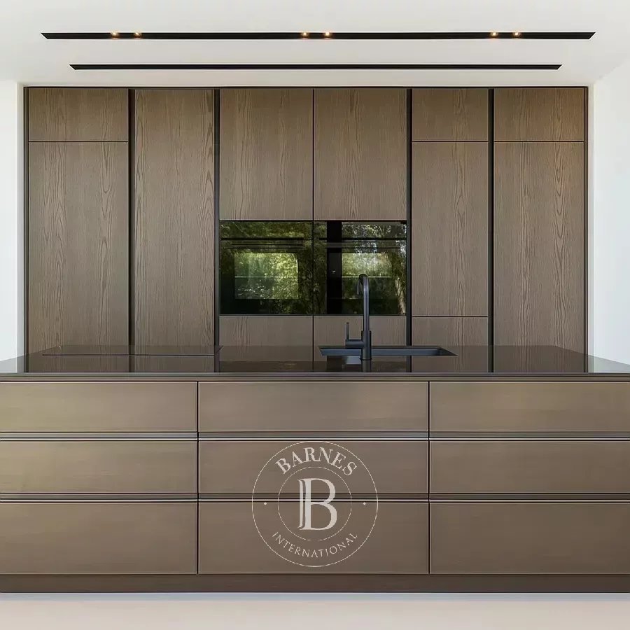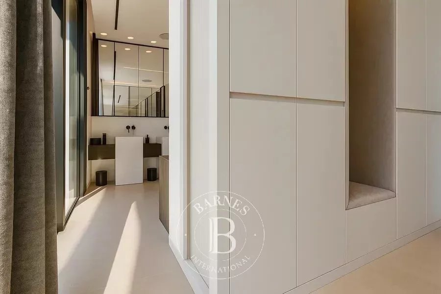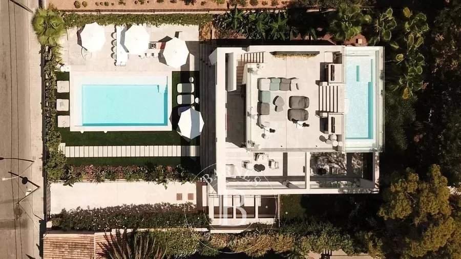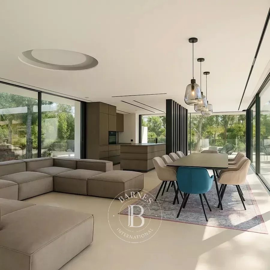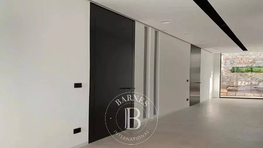 The open-plan living, dining, and kitchen area is flooded with natural light and seamlessly connects to the terrace and balcony, where the rooftop pool provides stunning views of the Mediterranean. Underfloor heating and air-conditioning create a comfortable climate year-round, while an advanced domotic system allows complete control of lighting, temperature, and security. The villa also includes a summer kitchen for outdoor entertaining and a garage with space for up to four vehicles.