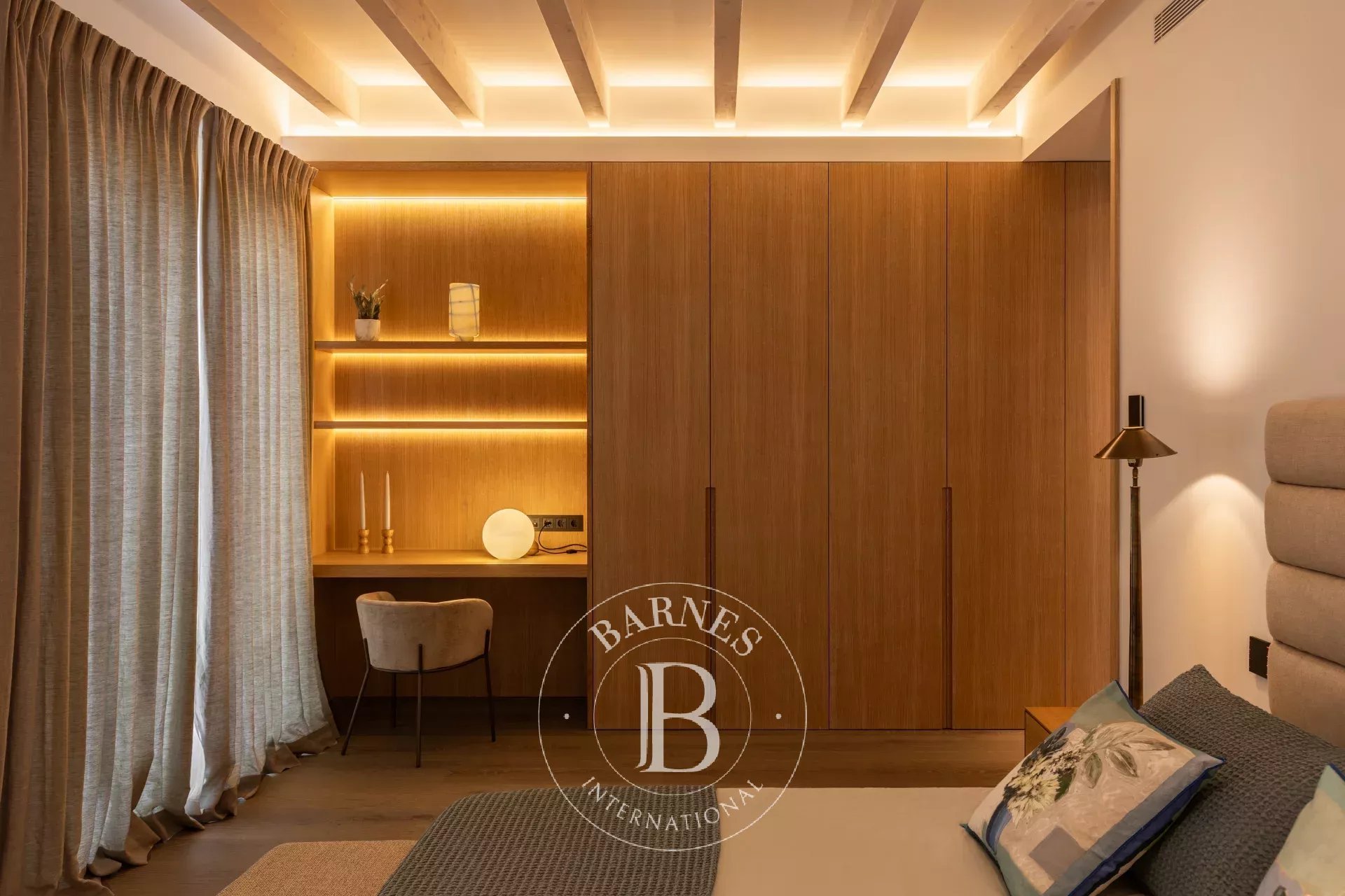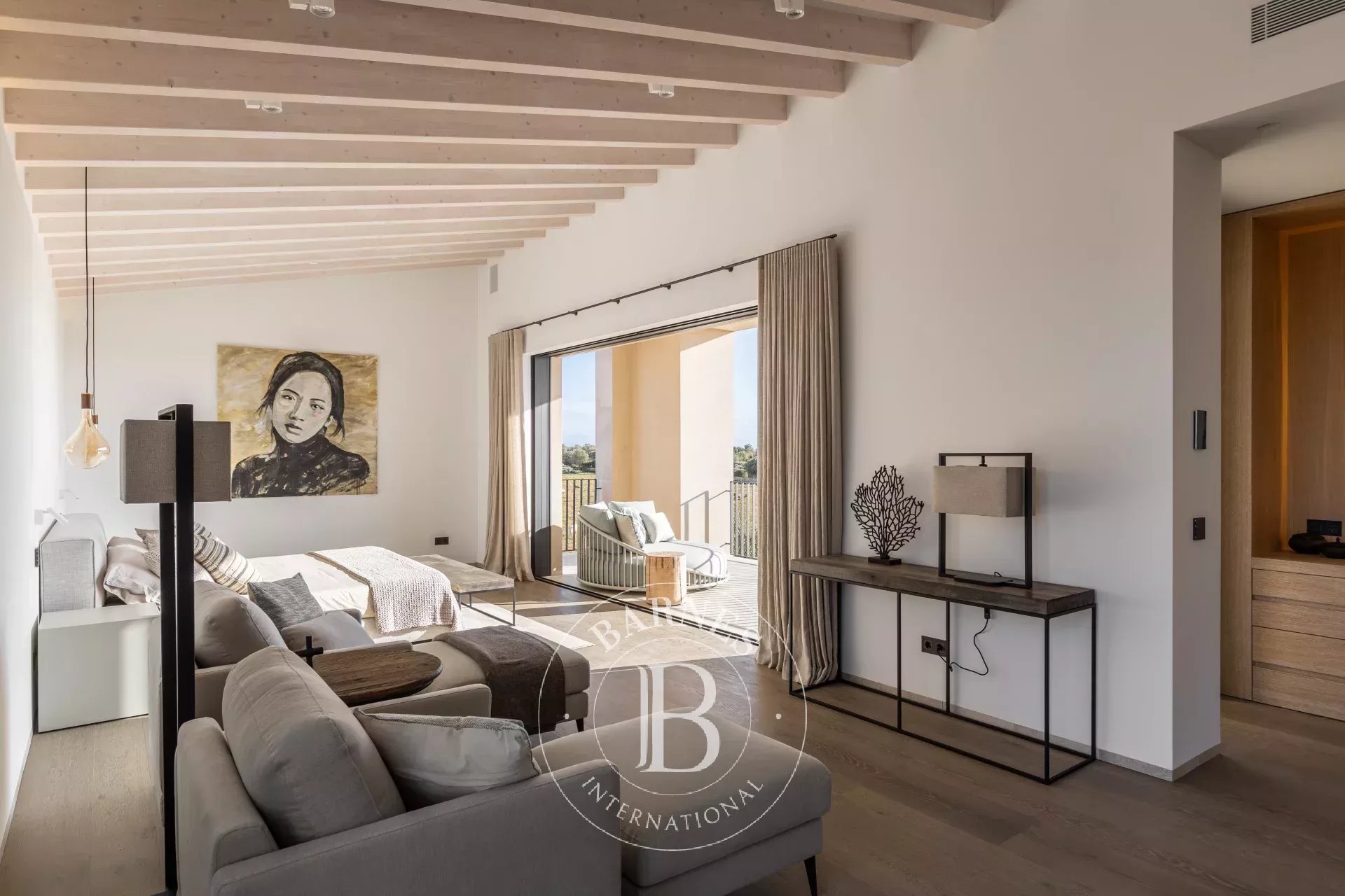 Four bedrooms with en suite bathrooms are distributed for privacy, including an expansive master suite with dressing room, relaxation area and private terrace overlooking the countryside. An additional guest bathroom, laundry room and fitted wardrobes throughout enhance everyday comfort. Underfloor heating, ducted air conditioning, double glazed windows and a full home automation system ensure year round efficiency and ease.