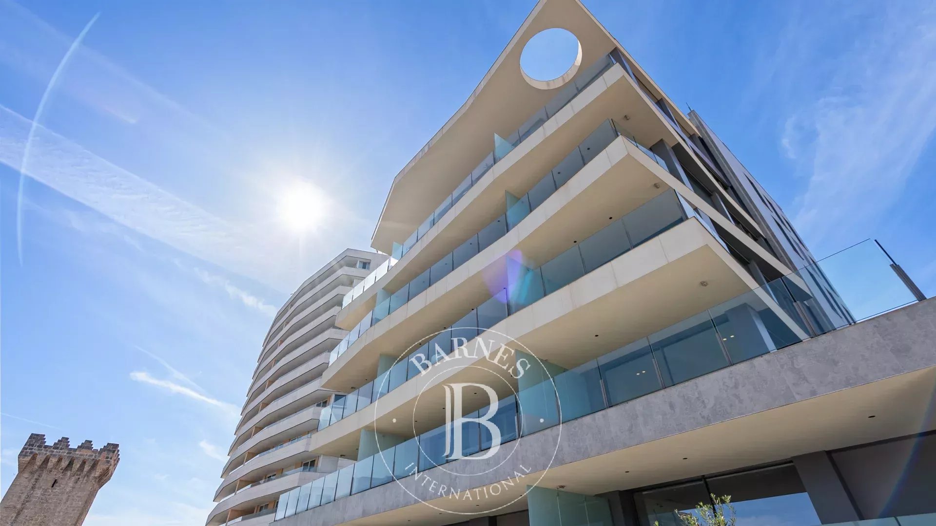 This modern 3-bedroom, 2-bathroom apartment occupies approximately 139 square meters in total, including 122 square meters of living space and a 16-square-meter terrace, on the third floor of a recently completed luxury complex on Palma’s Paseo Marítimo. Designed with an asymmetrical shape, high-quality glass façade, and elegant stone cladding, the building offers 15 exclusive sea view apartments complemented by a large outdoor pool with sun terrace, indoor pool, gym, and sauna.