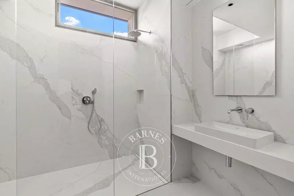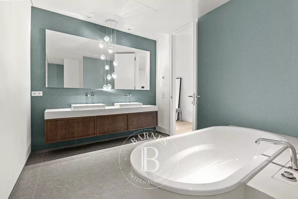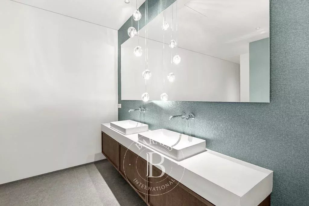 The basement provides a versatile space suitable for a home cinema, gym, or additional living area, accompanied by a guest bathroom. Modern comforts such as underfloor heating, central air-conditioning, and an integrated elevator enhance daily convenience.