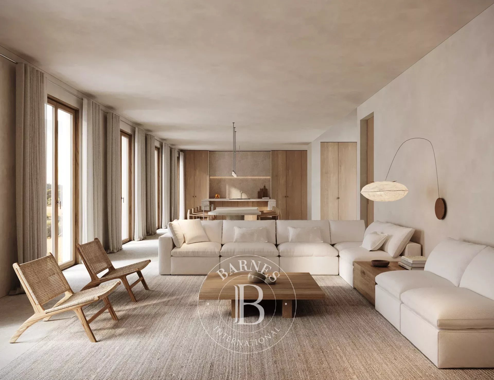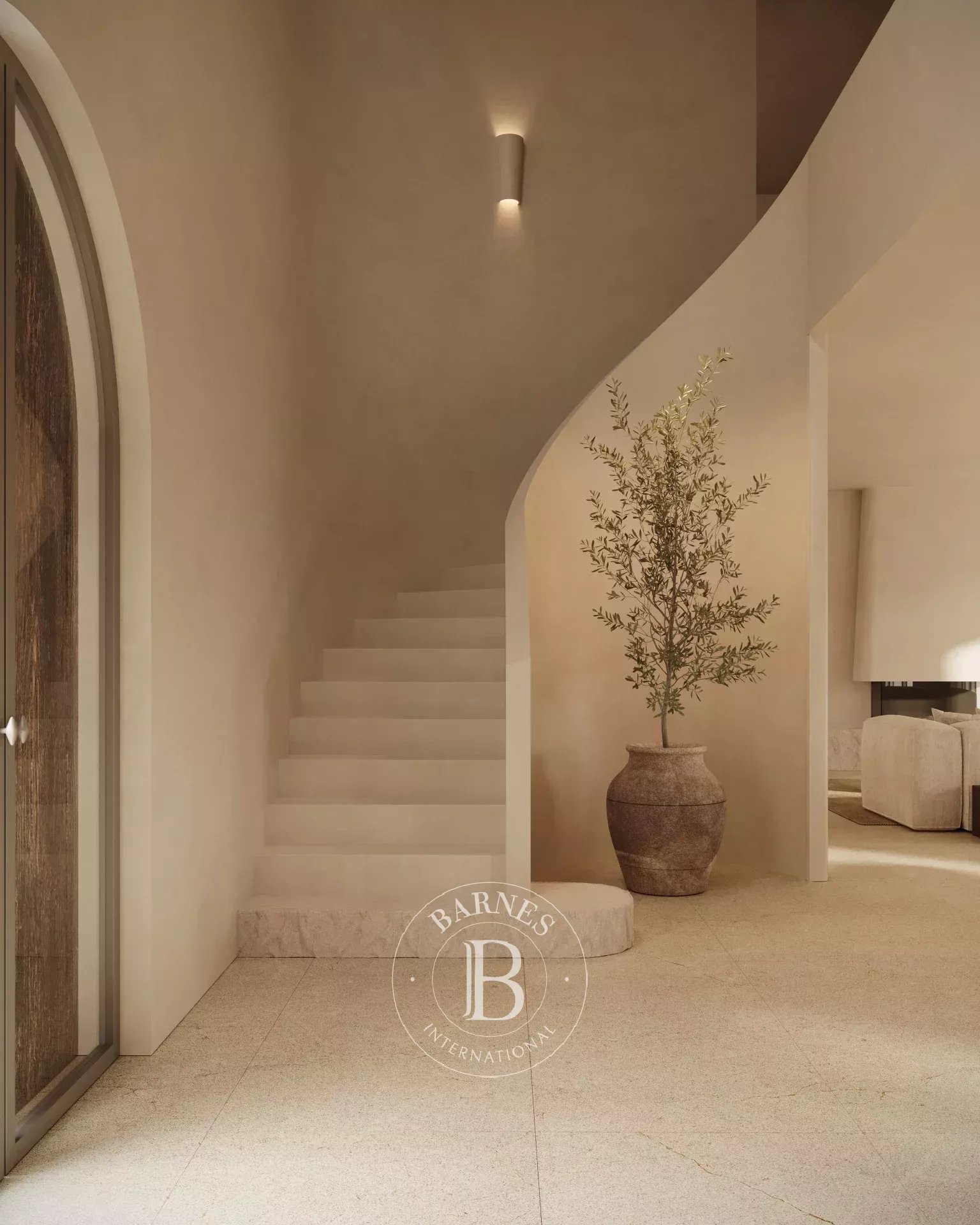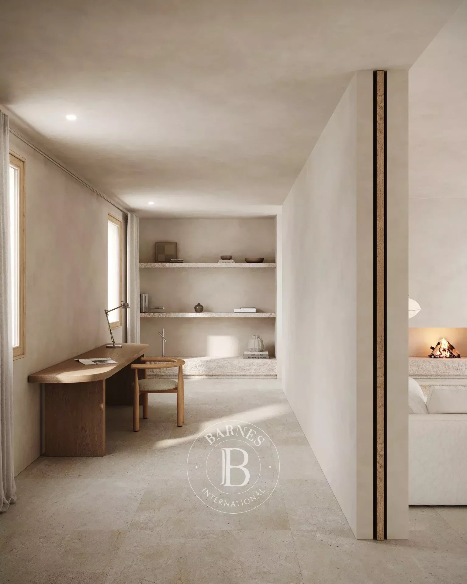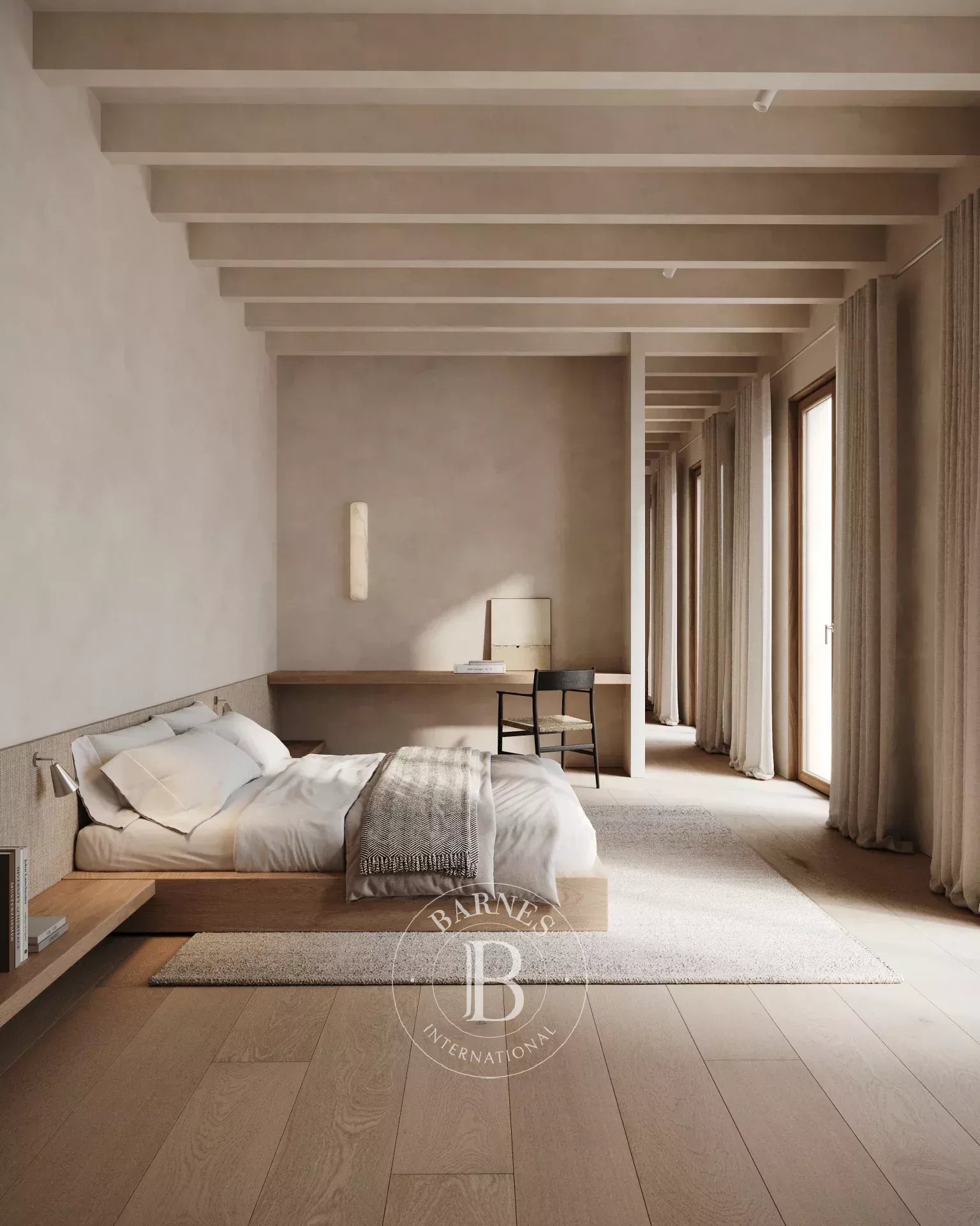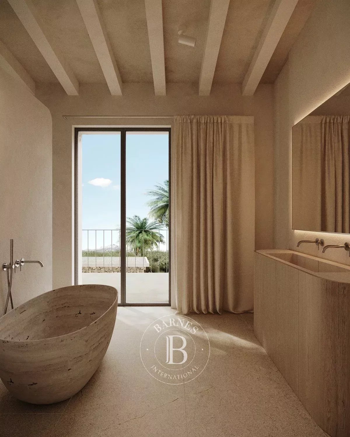 Finca Son Garrover is a newly built Mediterranean estate in Cala Llombards, designed to combine contemporary living standards with the character and proportions of traditional finca architecture. Set across three levels and complemented by a separate guest house, the property offers a carefully considered layout with five bedrooms and eight bathrooms, creating a residence that works equally well as a primary home or a private retreat for extended family and guests. The architectural concept focuses on clean lines, natural materials and a timeless finish, combining natural stone façades, bespoke solid wood carpentry and Bauwerk limewash finishes throughout to create a warm and understated interior atmosphere.